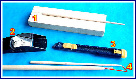- 2 & 3. For the tapering, use a small plane or a cutter. A sanding block with paper n° 100 is also helpful.